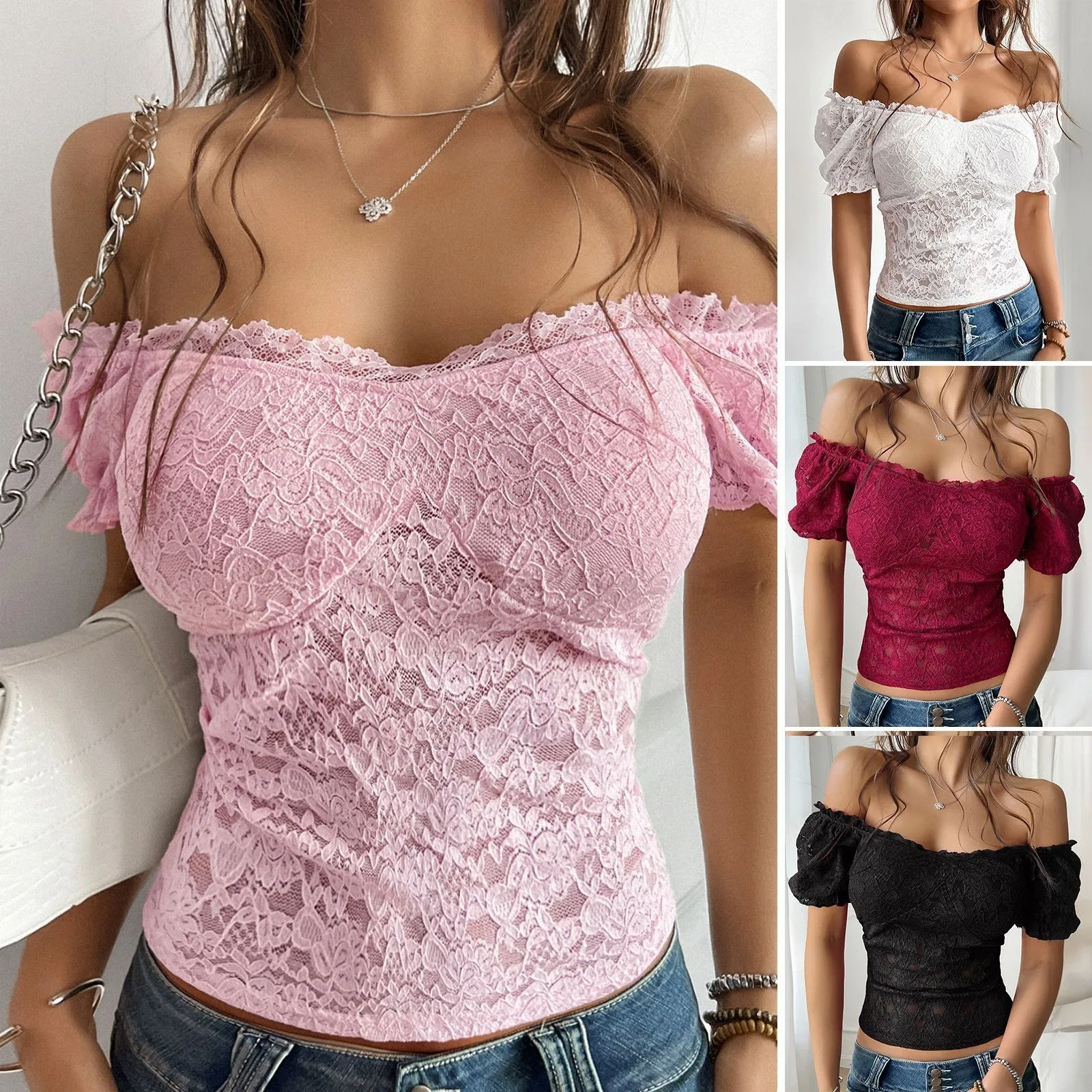 2026 Spring and Summer Sexy Hollow Out Navel Slimming One Shoulder Lace Top